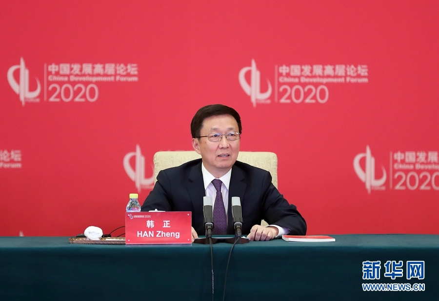 11月11日晚,中国发展高层论坛2020年年会在北京开幕。中共中央政治局常委、国务院副总理韩正出席开幕式并致辞。新华社记者 姚大伟 摄