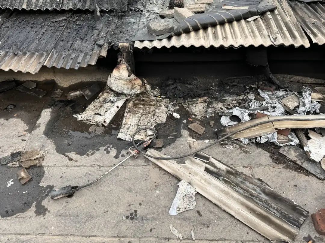 “这个屋角可能漏水,我刚用喷枪烧了几下,就冒烟了,石棉瓦不可燃,可能是把石棉瓦下面的保温材料引燃了。”过火后饭店二层屋顶已经被烧穿,留下一个巨大的空洞,负责动火的工人马某某回忆了事发经过,“从冒烟到起火非常快速,也就一两分钟,看到着火,我们俩立马用旁边的三个干粉灭火器灭火,但(燃烧的保温材料)隔着石棉瓦,(灭火药剂打不进去)根本灭不了,我们就赶紧报警了。”
