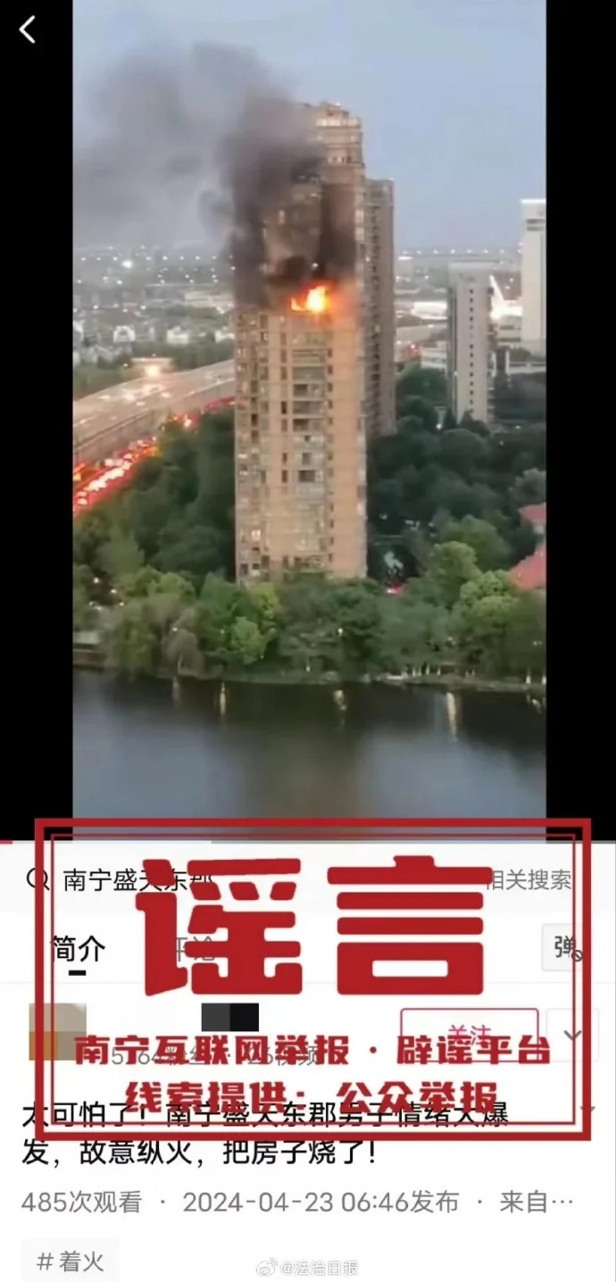 近日,一条“南宁盛天东郡一男子因情感纠纷故意纵火烧家”的视频在短视频平台和社交平台传播。