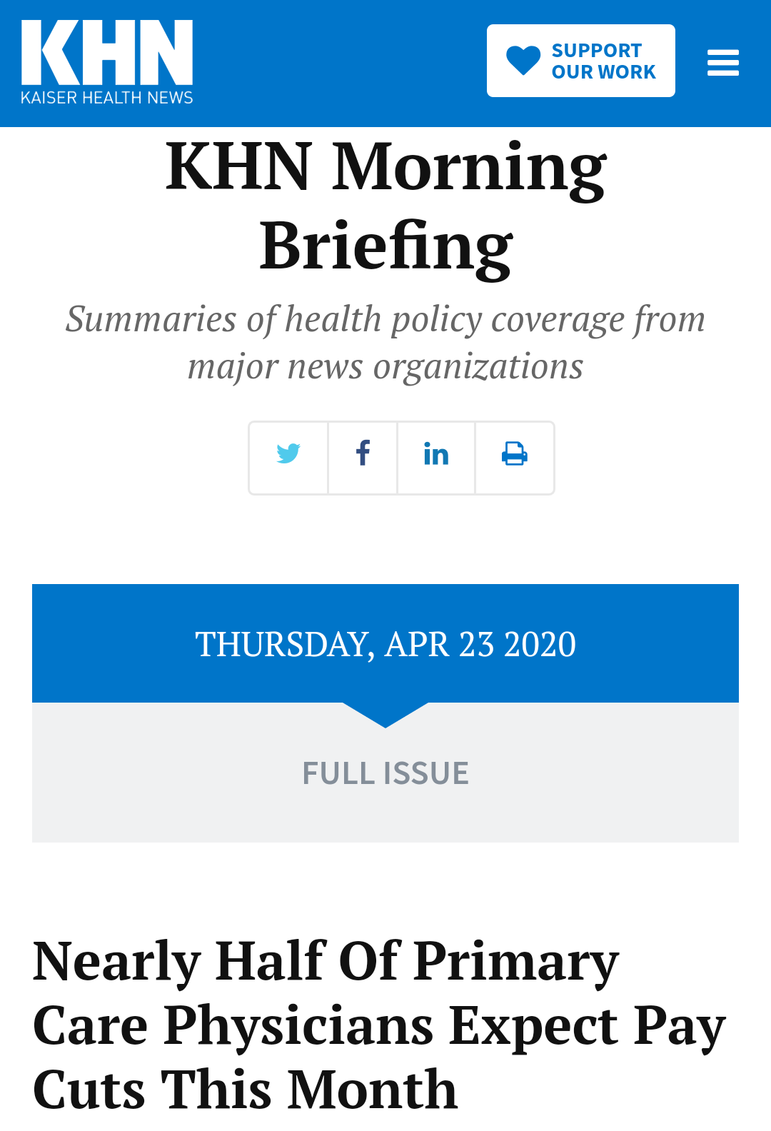 △美国医疗新闻网站KHN报道,近一半主要医疗工作者将遭减薪