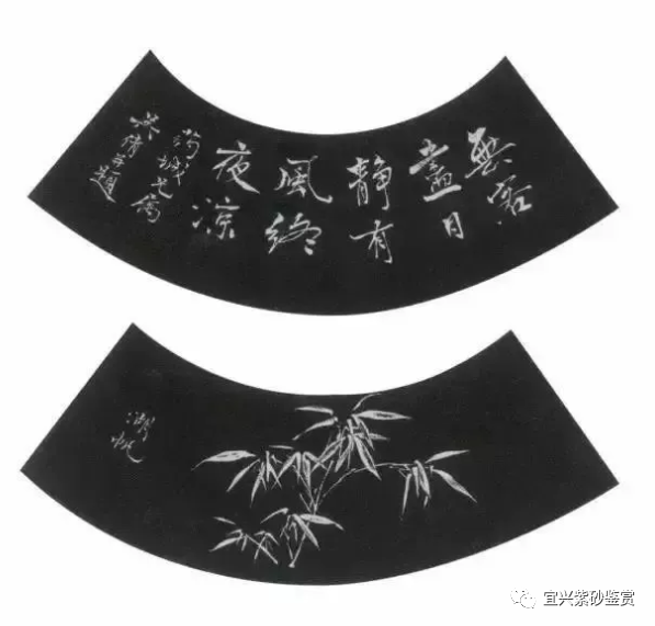 湖帆石瓢壶 顾景舟制 江寒汀画 2015年北京东正春拍 成交价:RMB28,175,000 正面:壶上孤雀雪梅画 落款 湖帆道兄正画寒汀 反面:镌刻“细嚼梅花雪乳香”寒汀兄为余画茶壶倩自题 NO.6 九头咏梅茶具