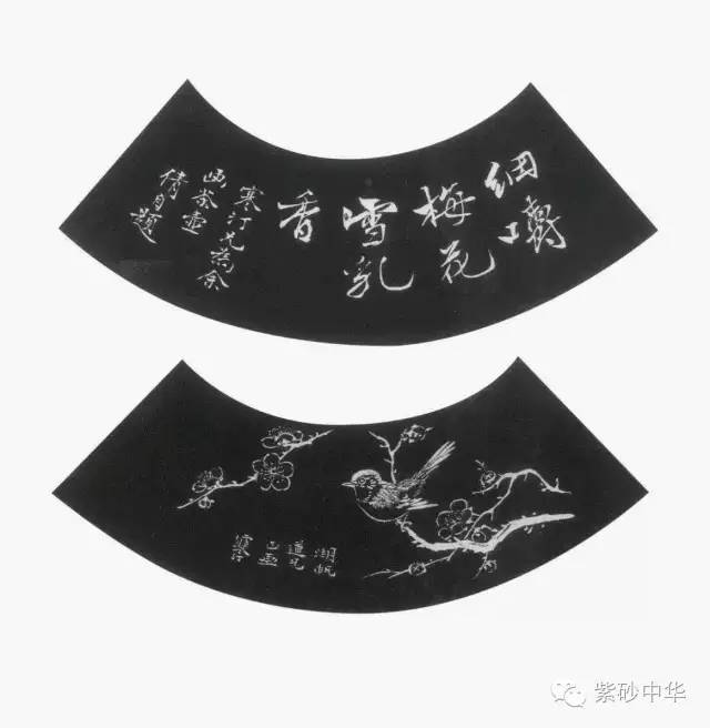 刻字为“细嚼梅花雪乳香。寒汀兄为余画茶壶。倩自题。”壶上孤雀雪梅画之落款为“湖帆道兄正画。寒汀”。