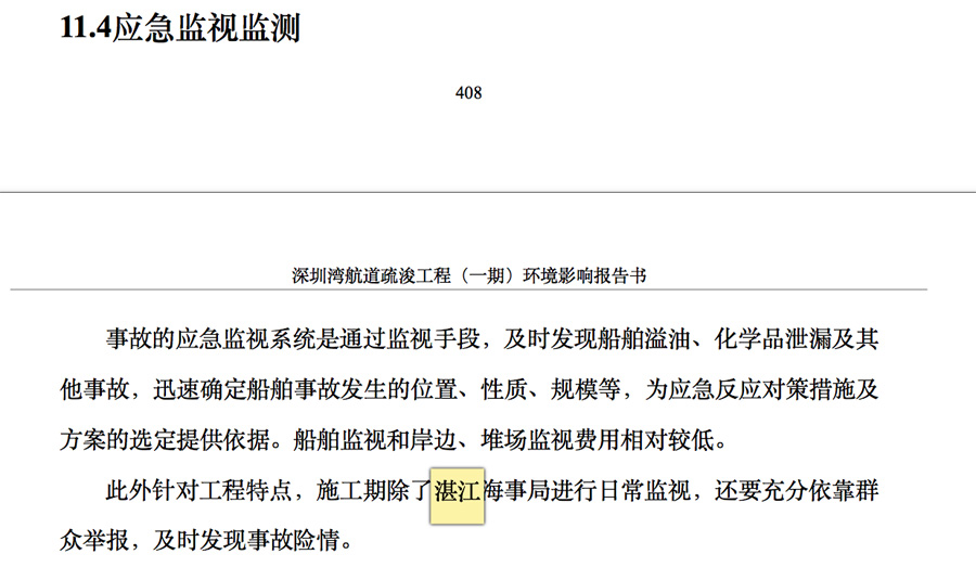 澎湃新闻此前报道,近日,深圳市交通运输局官网发布的深圳湾航道疏浚工程(一期)环评报告书被指涉嫌抄袭。报告书多处出现湛江字眼,涉嫌抄袭湛江航道疏浚项目环评,例如,环评中写道“深圳湾航道疏浚工程是落实湛江市国民经济和社会发展‘十三五’规划的体现”,“项目建设可实现‘以湛江港为龙头,充分发挥其作为西南沿海地区主枢纽港的辐射功能,在湛江湾、雷州等地布局建设若干港口物流基地’的目标”。在项目生态评价上竟然出现了“项目不会对湛江湾现有红树林造成明显不利影响”等字眼。
