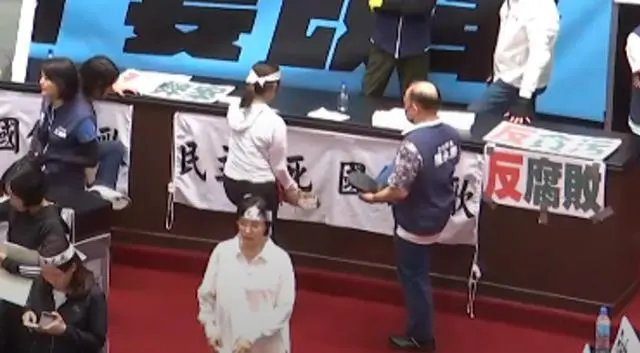 台立法机构今天下午继续处理相关改革法案,民进党不断举牌要求退回重审、散会、祭出案海战术试图杯葛,但立法机构负责人韩国瑜依然延续举手表决的做法逐条表决,国民党团也提出延长开会时间到今天午夜12时。