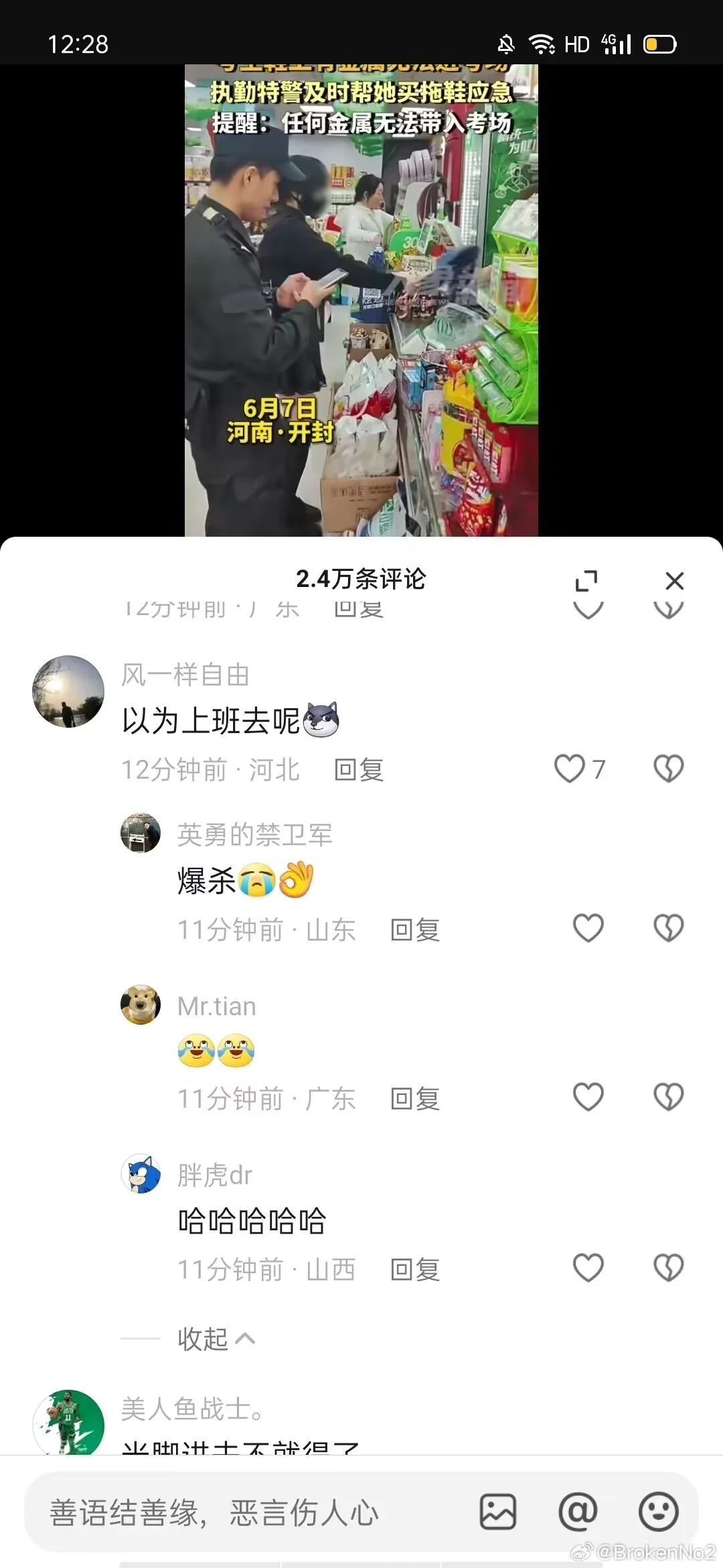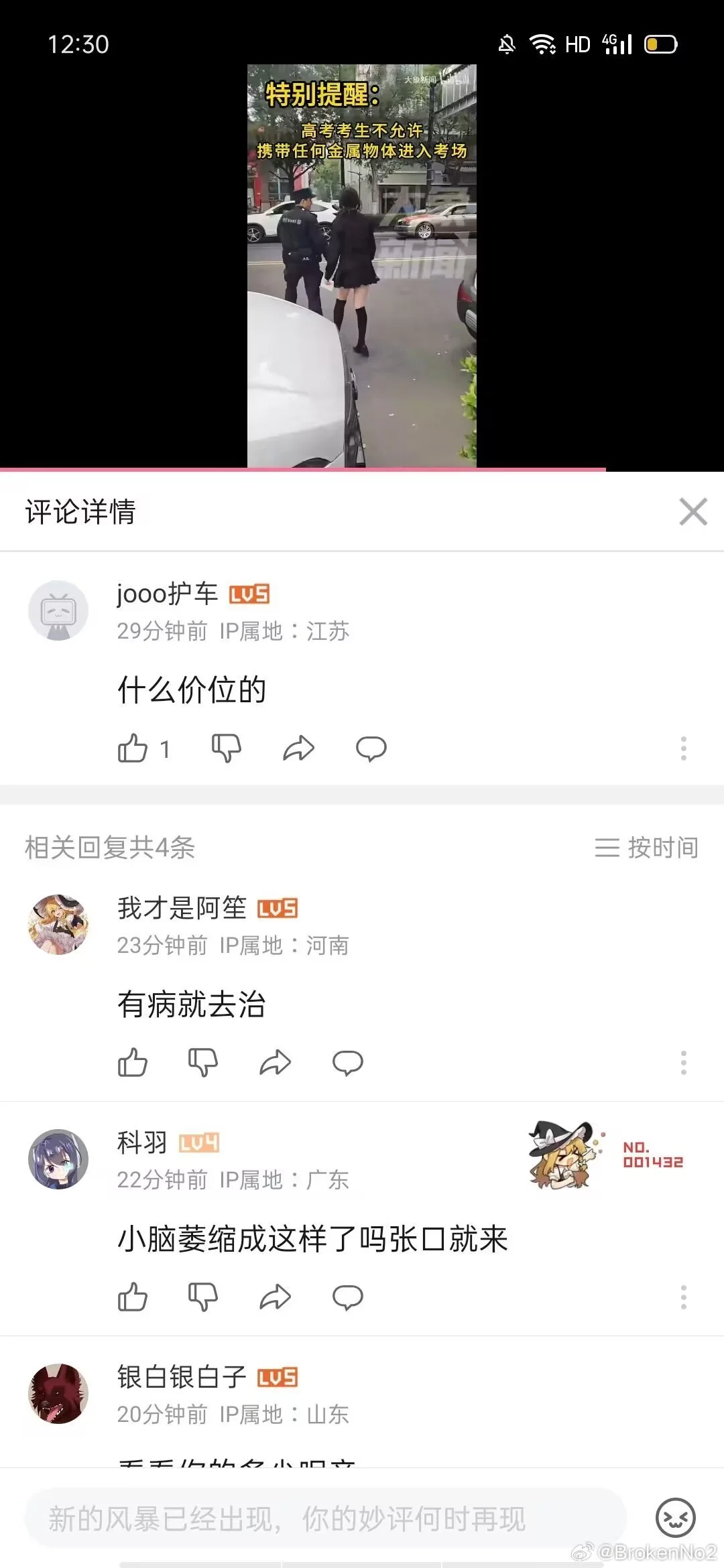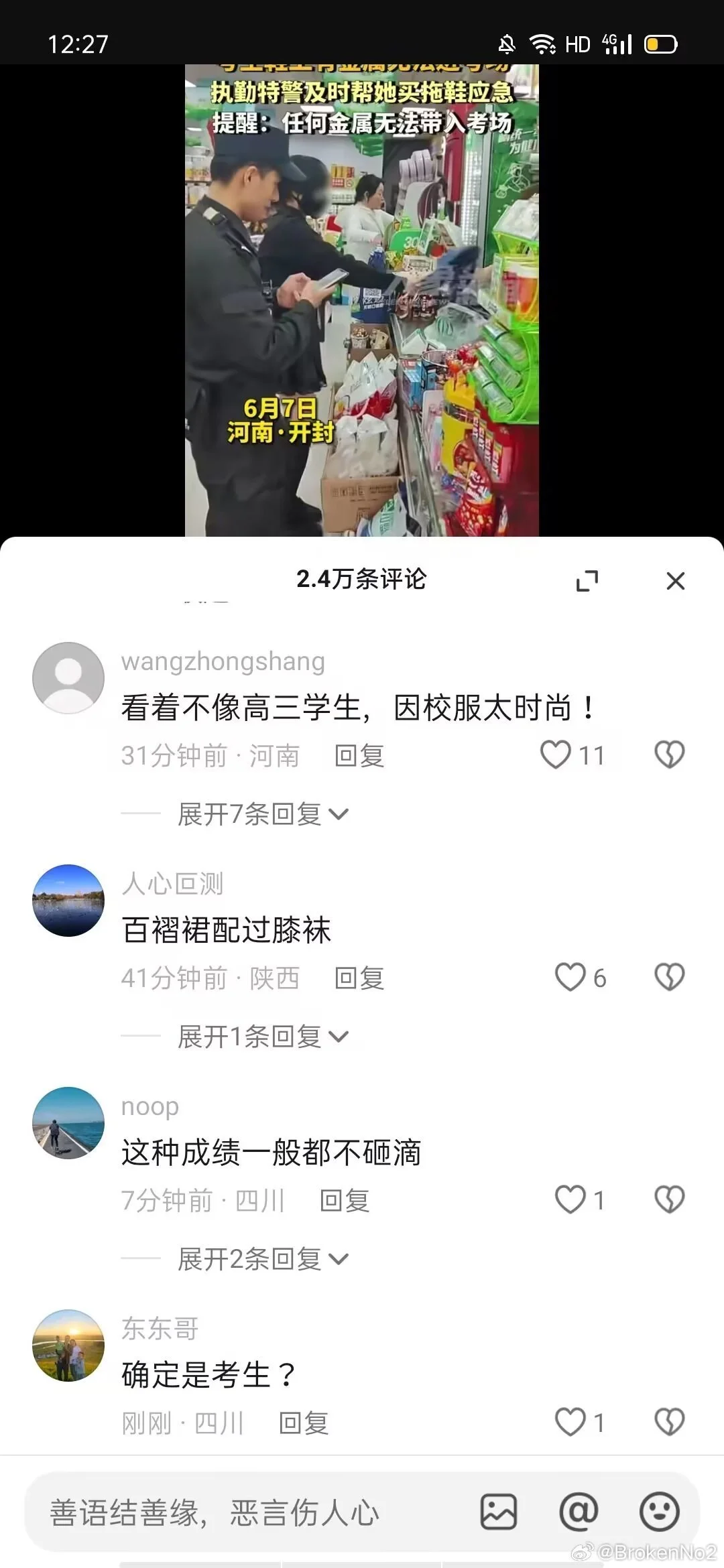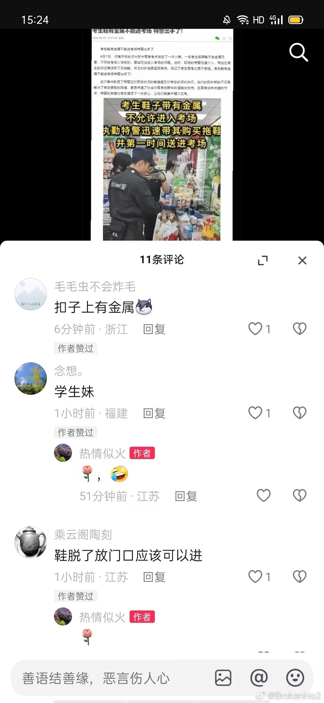 从下午场开始考试前就已经报警联系媒体删视频 到开考前半小时才删除了b站抖音微博平台的事情 当时热度已经17w点赞 plq对我的辱骂数不胜数 直到今天下午五点到六点仍在陆陆续续收到同学的消息 甚至视频号依旧没有删视频 本人已经采取法律措施维护正当权利