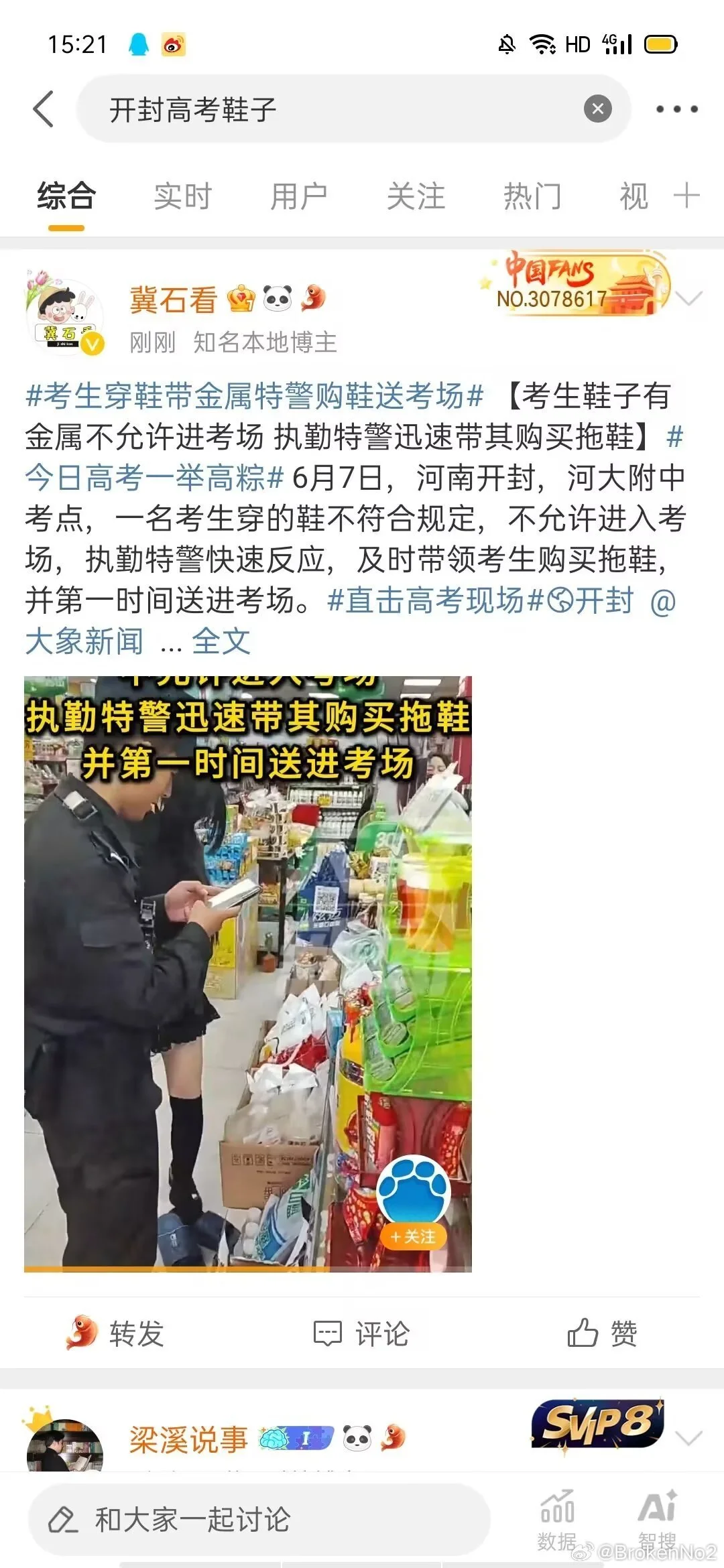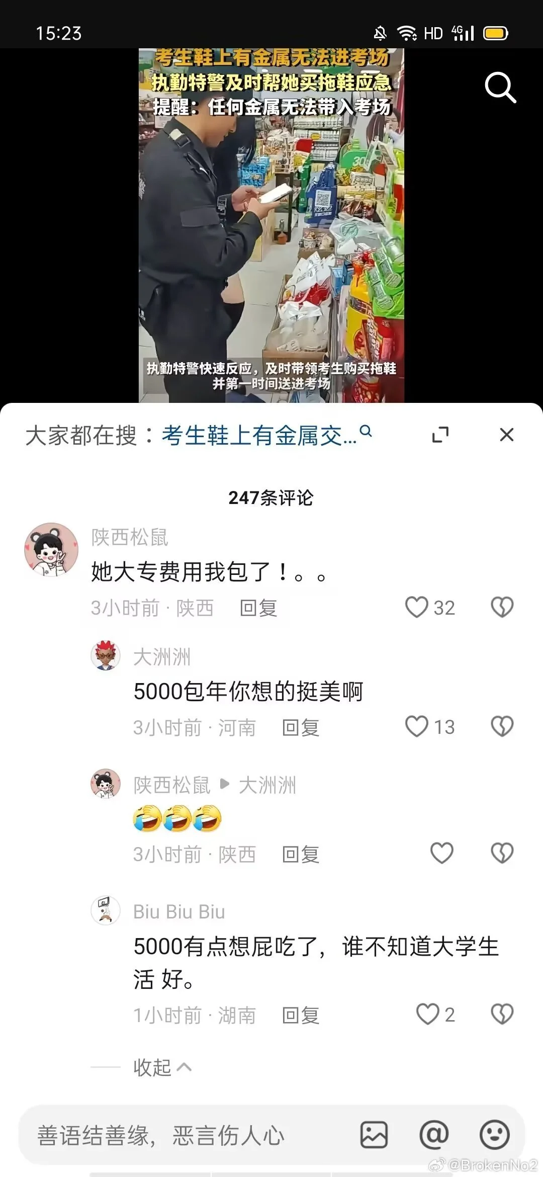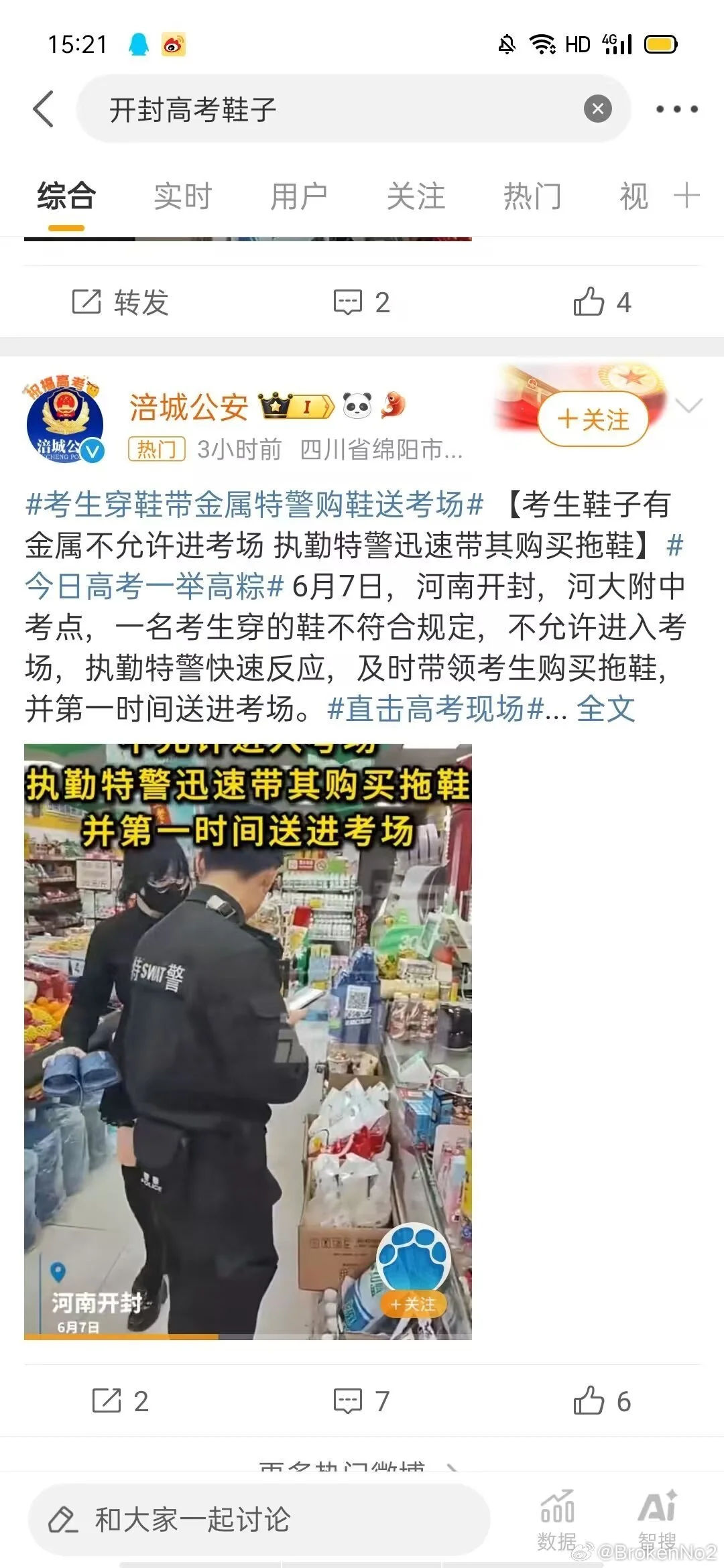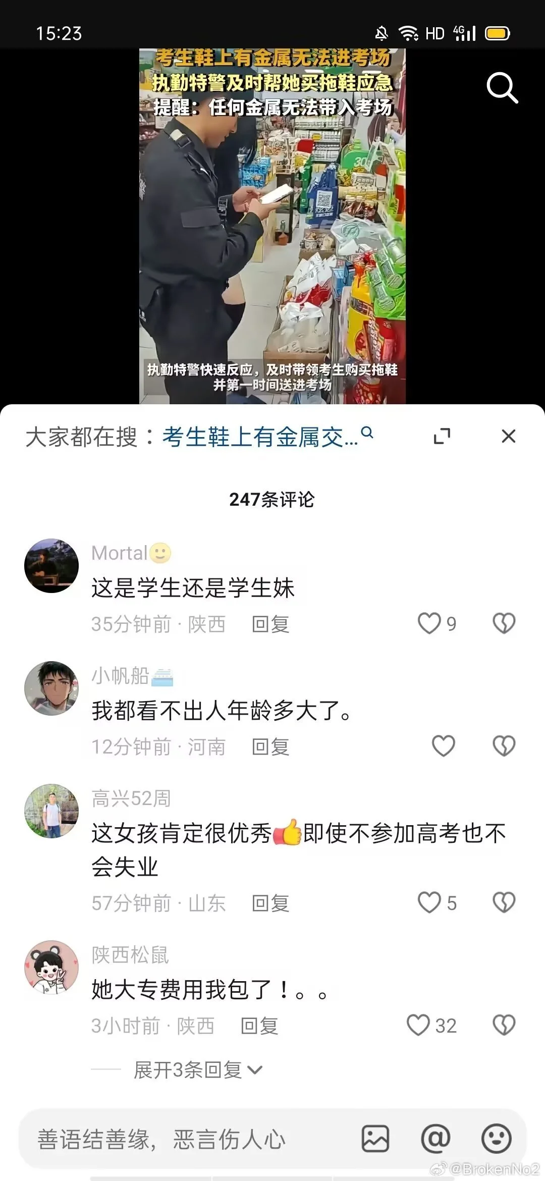 我是今天河南高考鞋子出问题被特警带走买拖鞋进场考试的当事女生 感谢我的朋友为我发声 但是因为原帖被删我这边恢复一些以后还是决定进行补档 另外因为个人承受能力的原因已经不准备接着考试了 大家不要吵架我真的特别感谢你们