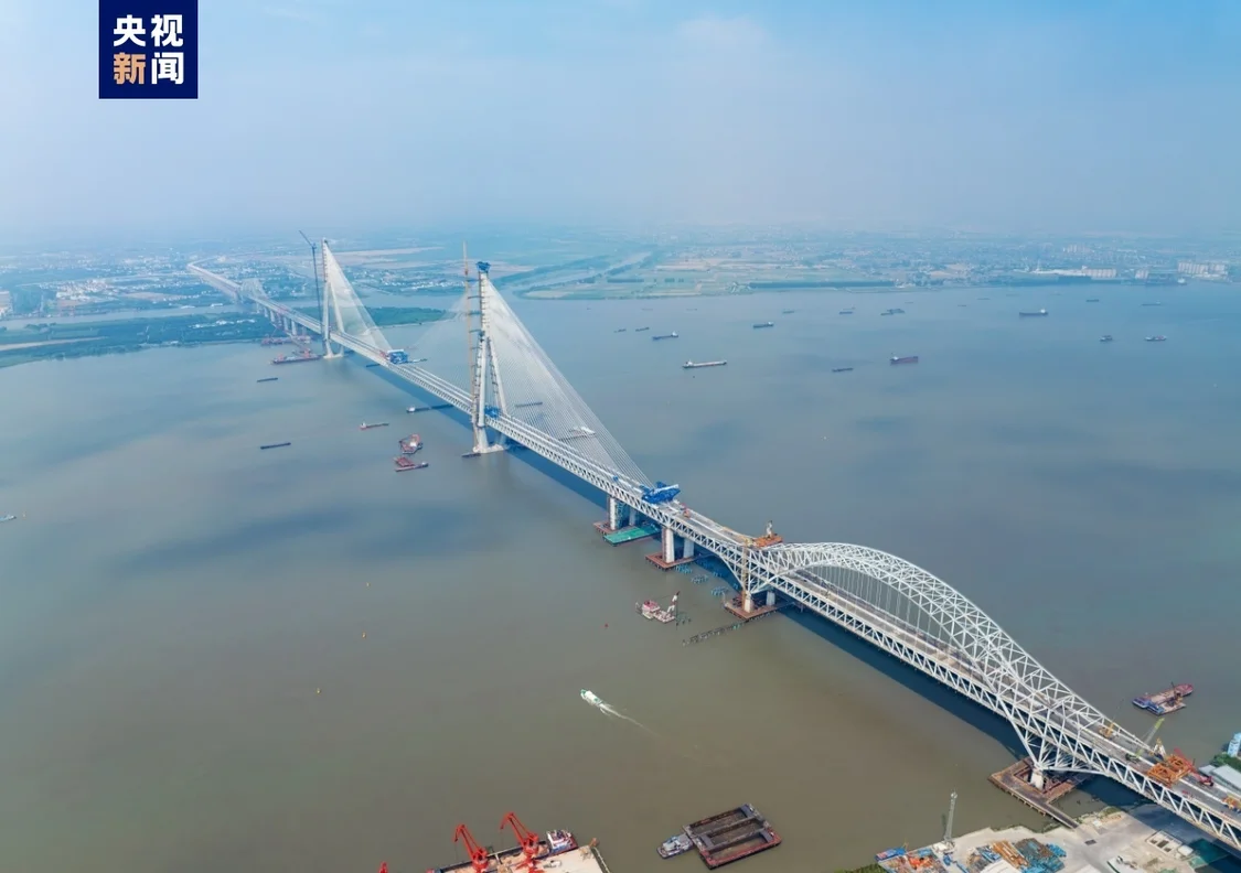 常泰长江大桥是长江上首座集高速公路、城际铁路、普通公路三种方式于一体的过江通道。大桥全长10.03公里,其中公铁合建段长5299.2米,由一座主跨1208米的钢桁梁斜拉桥、两座主跨388米的钢桁拱桥和一座3×124米的连续钢桁梁桥组成,创下了最大跨度斜拉桥、最大跨度公铁两用钢桁拱桥和最大连续长度钢桁梁的世界纪录。