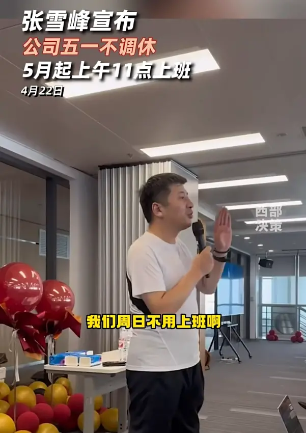 而在今年五一节,全民因为调休怨声载道时,张雪峰在公司内宣布,“本公司不调休”的视频,又在网上不胫自走。
