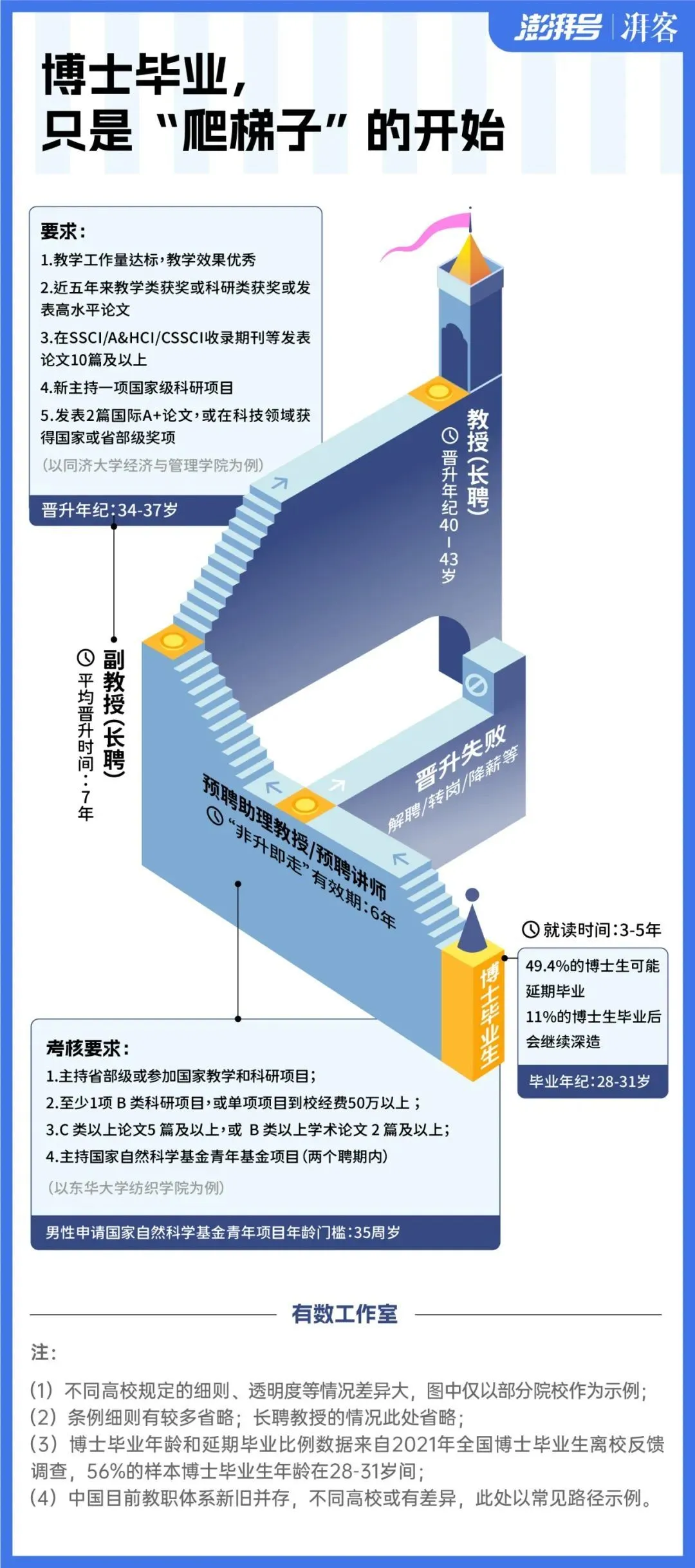 中国大陆高校的博士生毕业时,大多在 28-31 岁间。预聘制之下,一个 30 岁的博士毕业生,如果没有博士后经历直接进入高校,他得在 36 岁前完成晋升。