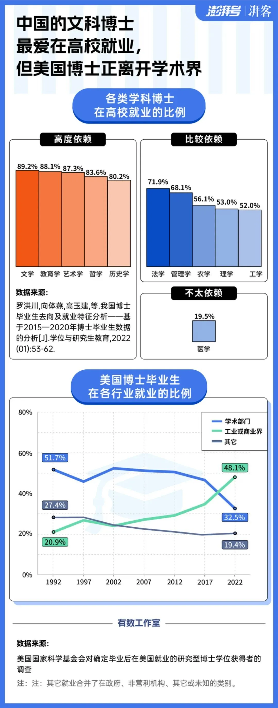 当然,博士生在学术和科研道路上的坚持,本身是再正常不过、也值得被珍惜的选择。只不过,在高校教师职业日益灵活化、内卷化、流动性加强的背景下,或许也该有更多博士生能以更开放的姿态去面对非传统的选择。而高校如何在培养博士生时更加与时俱进,让他们看到更多的可能性,减少日后可能出现的职业转变的阵痛和耻感,也是值得期待的。