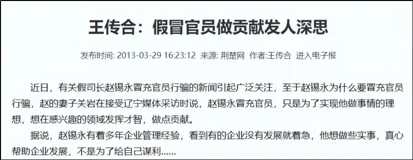 一边是,假冒官员疑似做了实事的新闻反复被人提起。