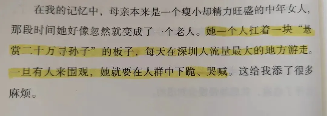 天天一个人扛着一块“悬赏二十万寻孙子”的板子,每天在深圳人流量最大的地方游走。