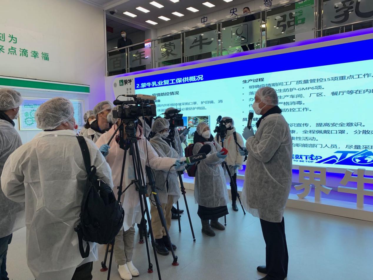 海外媒体团于蒙牛北京工厂内采访全生产防控措施与复工复产情况
