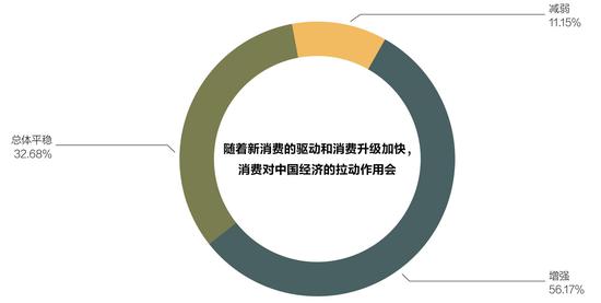与投资和出口经受较大压力相比较,多数受访者认为消费对我国经济的拉动作用将会进一步增强,其作为经济增长压舱石的作用将更加凸显。近年来,随着国内消费升级,特别是中产阶级群体的扩大,国内强劲的消费需求对经济增长的贡献和对外资的吸引力都在不断增强,并成为支撑中国经济的最重要因素。即使在疫情短期剧烈冲击消费的背景下,仍有超过一半(56.2%)的受访者认为消费对中国经济的拉动作用会增强,32.7%的受访者认为消费的贡献会保持总体平稳,只有11.1%的受访者认为将减弱。在对2020年中国经济主要风险的判断中,认为居民消费将进一步回落的受访者占比也只有19.4%。从各国的经验看,消费增长具有棘轮效应,即消费水平易于升级,易于向上调整,而难向下调整。因此,充分利用这一规律,促进消费的恢复和增长,是对冲今年我国疫情影响的重要方向。