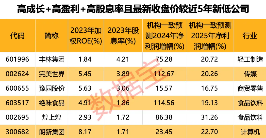 高成长+高盈利+高股息率且