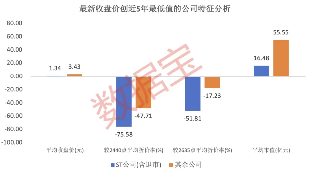 据数据宝进一步分析,以上同时跌穿2440点、2635点时价的690家公司中,有161家公司最新收盘价创近5年(2019年6月21日至2024年6月21日)来的新低。