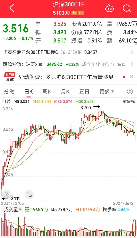 沪深300ETF于21日明显放量,从以往的行情来看,沪深300ETF基金放量往往是国家队进场的标志;如今年春节之前市场大跌之时,该指数基金就数次出现类似的情况。事后皆证实,确实存在国家队资金进场。
