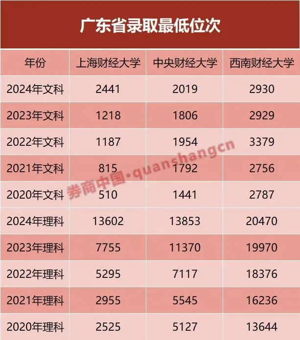 广东省也在降。与北京、上海不同,广东分文理科录取,不过不论是文科还是理科,三大财经院校的录取排位都降幅明显。