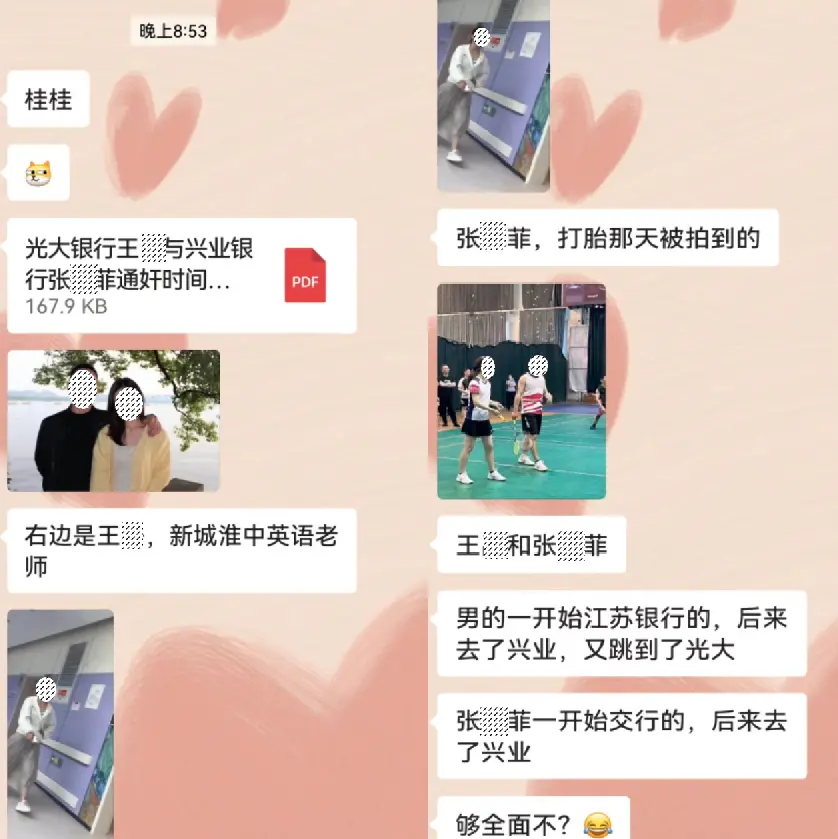 上周有“武术少年拳打中信建投”,今天“东证期货美女自曝劈腿多男”登上热搜,紧接着“光大银行王某与兴业银行张某菲通奸”的爆料开始广为传播。