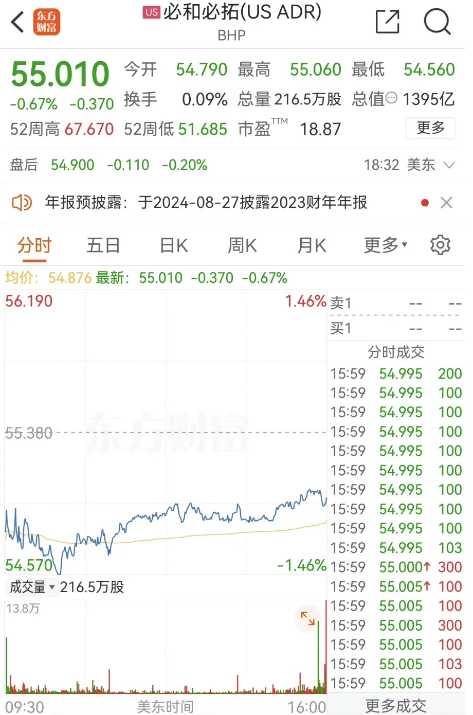 必和必拓持有Escondida铜矿57.5%股权。受上述消息影响,29日美股盘中,必和必拓股价一度跌1.5%,最终收跌0.67%,市值缩水至1395亿美元,折合人民币约1万亿元。