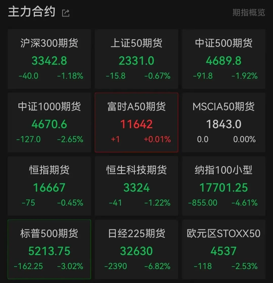 美股盘前,期指大跌。纳指100小型指数期货一度跌超6%,截至发稿,跌幅收窄至4.61%。