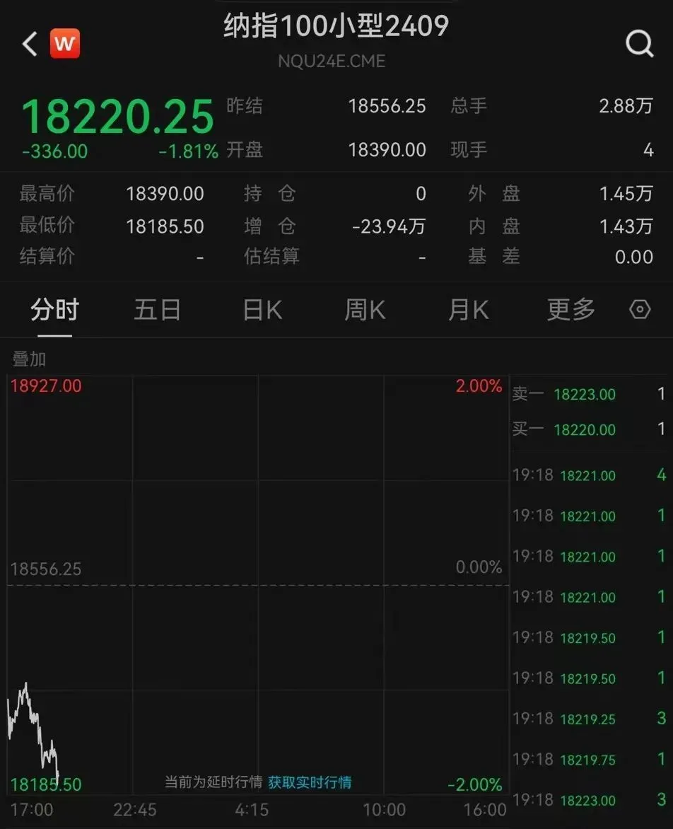 美股股指期货跌幅扩大,其中纳斯达克100指数期货盘中跌幅扩大至2%。