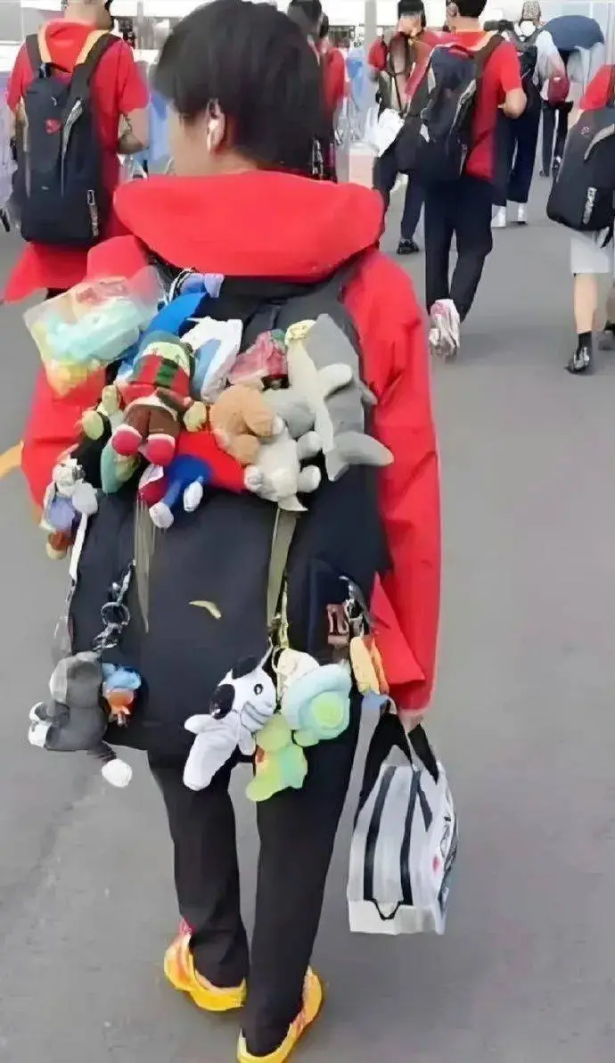 而“谷圈现象”在奥运会的蔓延远不止于此。全红婵在赛后被拍到,又背着那个比半个自己还大的“显眼包”走出场馆,像极了迪士尼门口的代购。