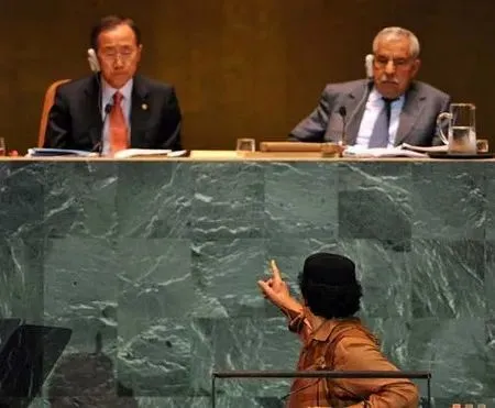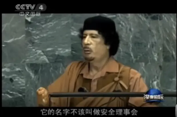2009年的时候,在一场联合国大会上,卡扎菲受邀做演讲,本来演讲只有15分钟,但他却滔滔不绝讲了94分钟,基本都是炮轰联合国在维持世界和平方面的失败,还指责安理会是“恐怖组织”,无视国家主权,滥用权力,要求取消常任理事国的一票否决权等等。