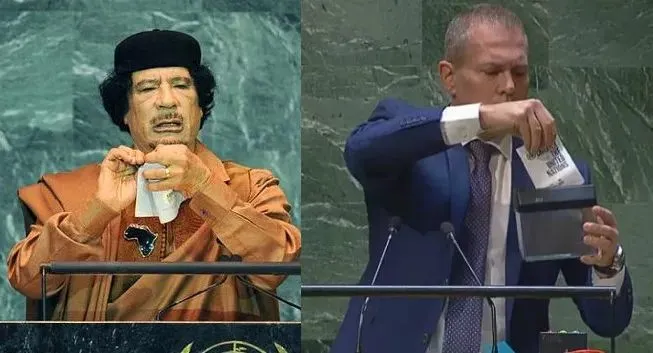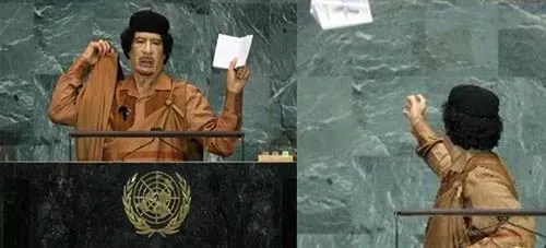 比如著名的前利比亚领导人“卡大佐”卡扎菲,就曾经在联合国上演过一场手撕《联合国宪章》的大戏。
