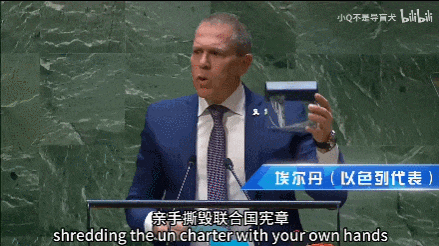 在随后的发言中,著名整活大师、道具大师、以色列常驻联合国代表埃尔丹,做出了一件让人惊掉下巴的荒唐举动。