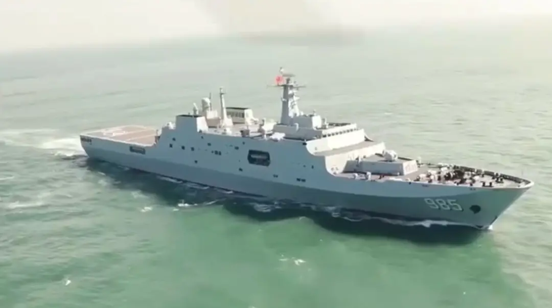 5月13日,央视消息披露,“金龙-2024”联演中方参演部队搭乘祁连山舰抵达柬埔寨并进行装备卸载。资料显示,祁连山舰(舷号985)系我国自主研制的071型船坞登陆舰,舰长210米、宽28米,满载排水量2.5万吨,最大航速25节,一次可投送一个营的登陆兵力,主要技战术指标国际领先。