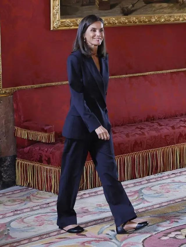 不过泽连斯基或许得暗中庆幸一下,因为当天莱蒂齐亚没有穿高跟鞋,她选择了一双毫无高度的平底鞋来搭配她的黑色西装。